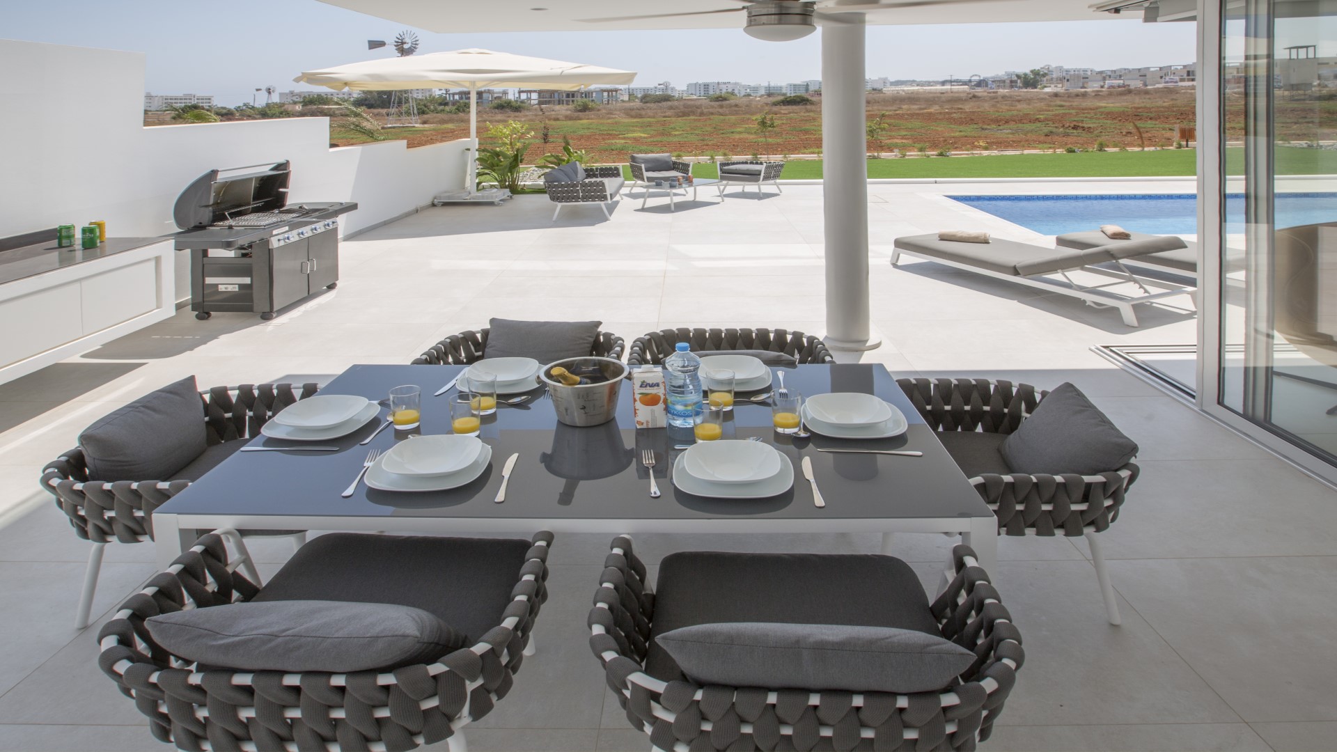 This stunning and luxurious villa is located in the popular resort area of Protaras and is just a 5 minute walk to the beach, as well as a vast selection of bars, restaurants and shops. Newly built and fully equipped with brand new furniture and fittings, the villa ensures a comfortable and perfect self-catering stay.