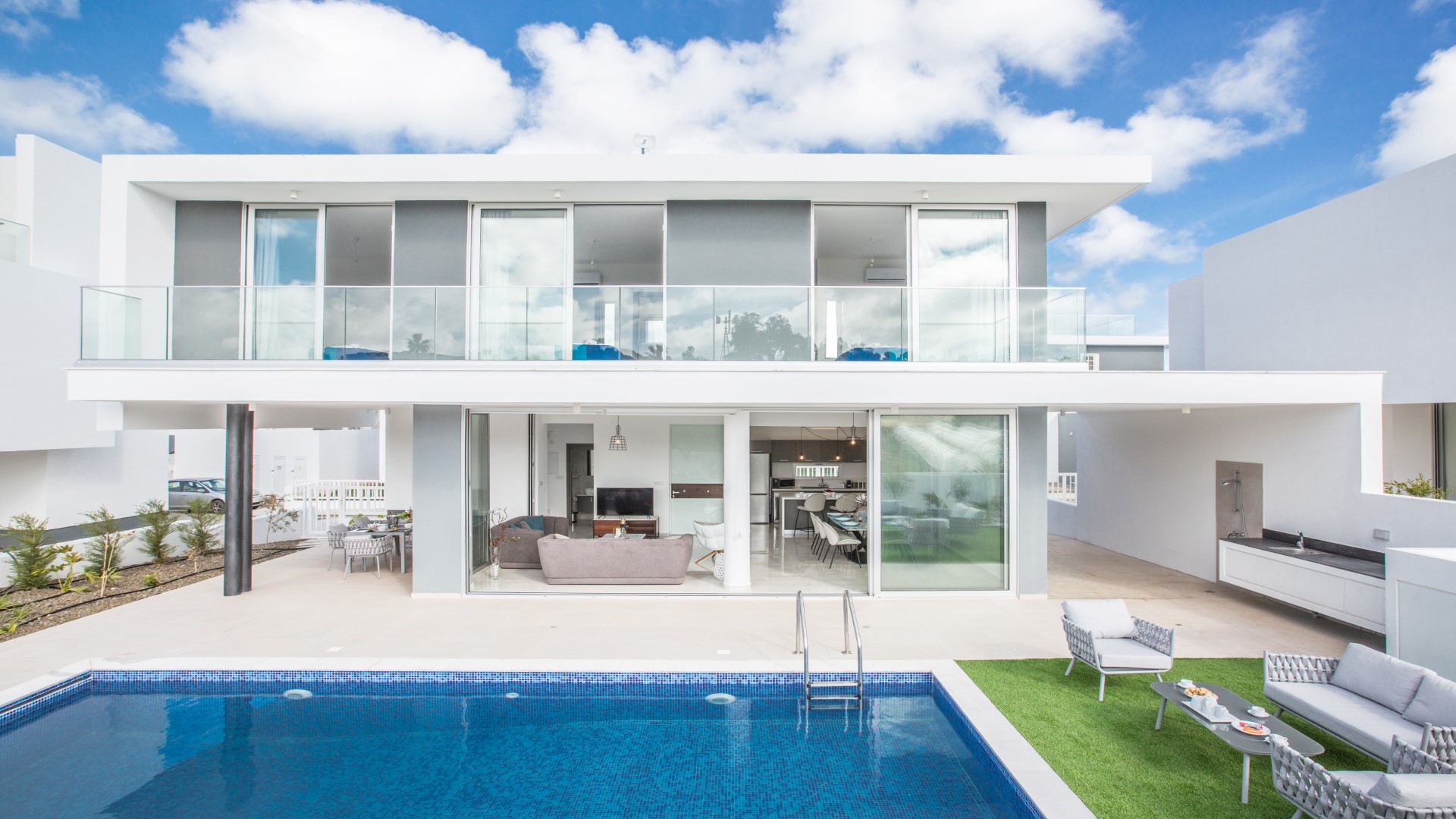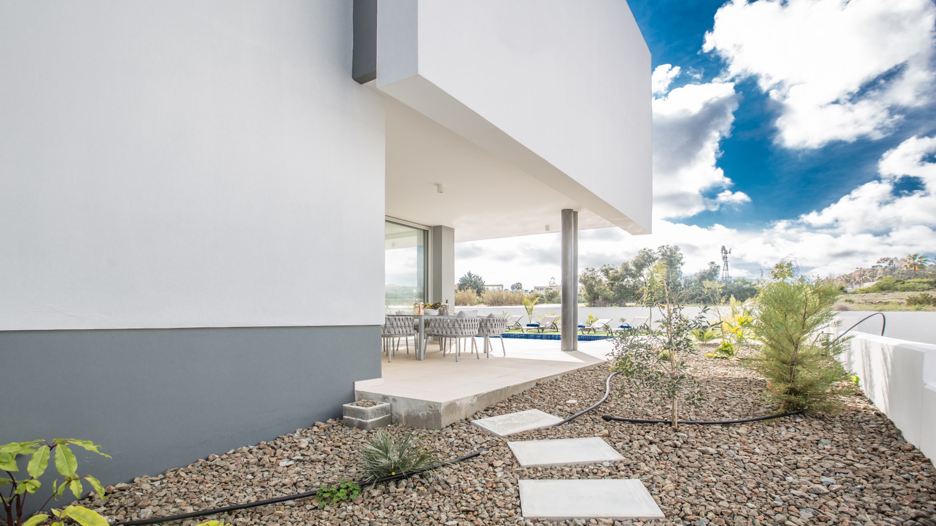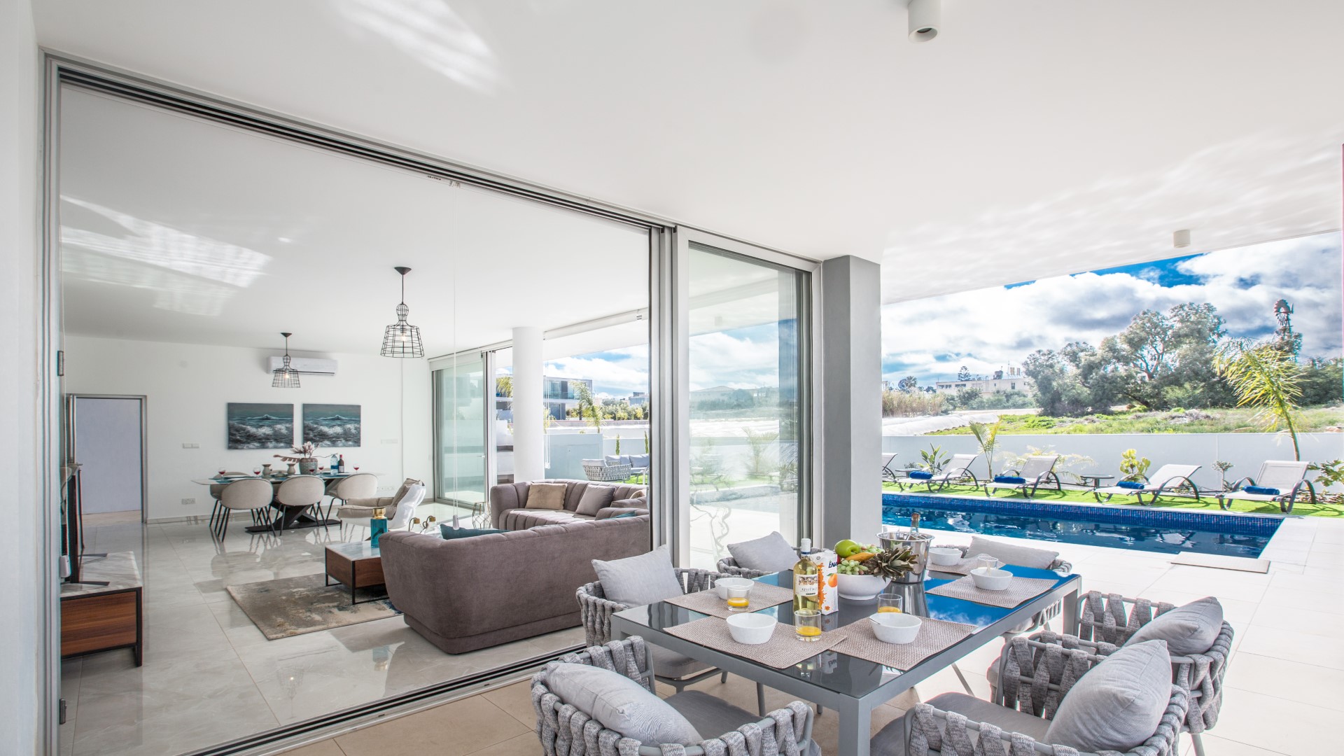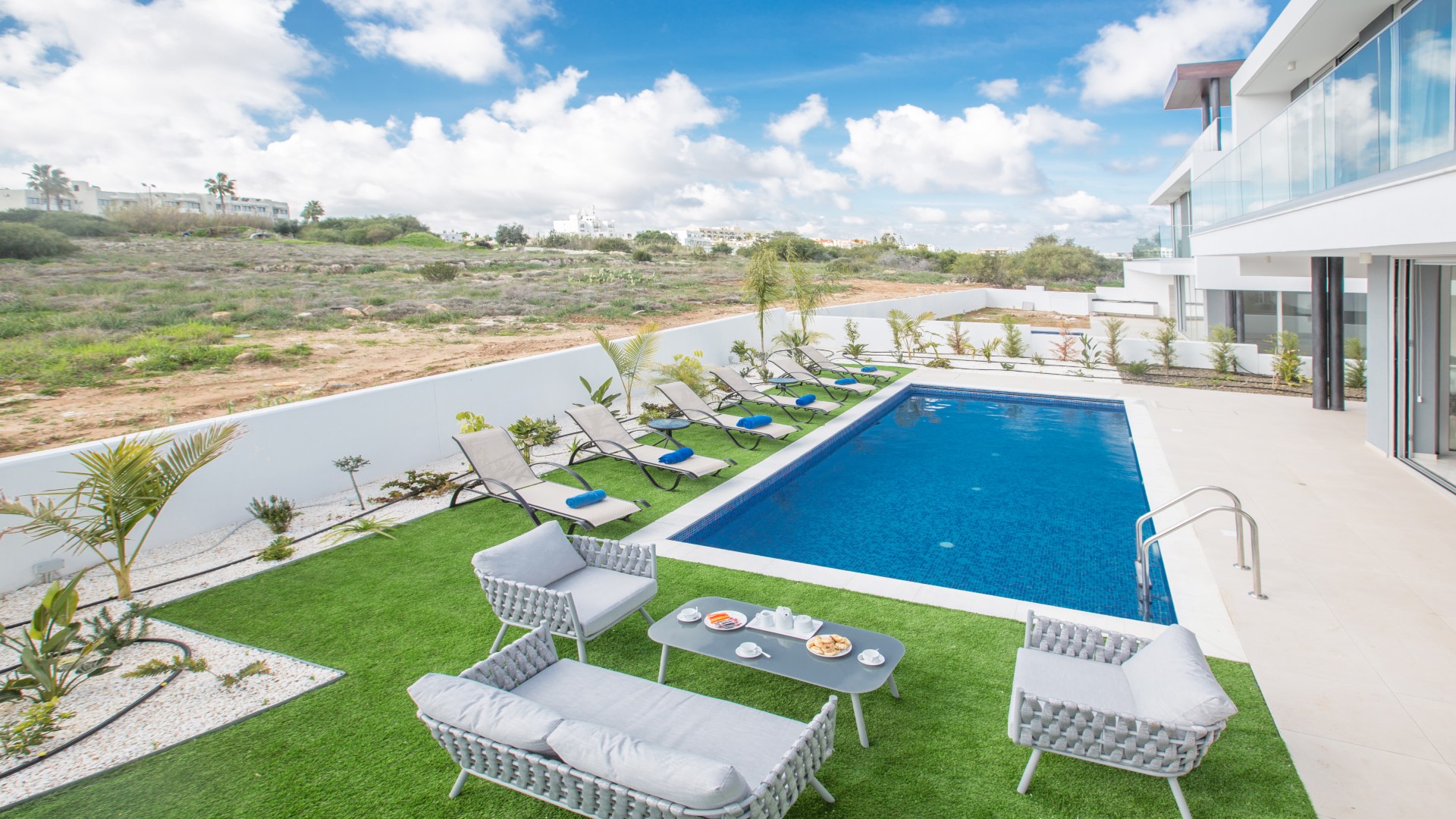 Outside, the spacious garden has been thoughtfully designed for outdoor living. Guests can enjoy a built-in barbecue area complete with worktop, sink and seating for al fresco dining, comfortable sun loungers, and a large private swimming pool — ideal for relaxing and soaking up the Cyprus sunshine.