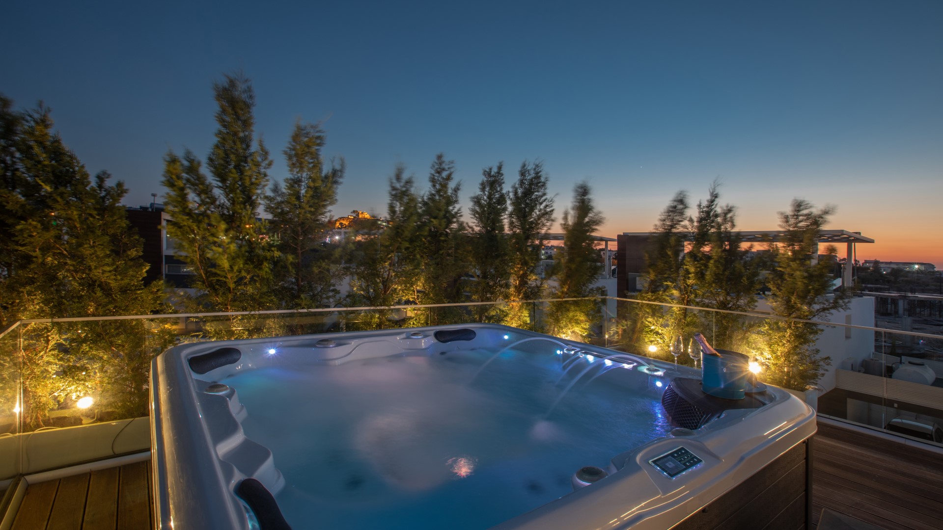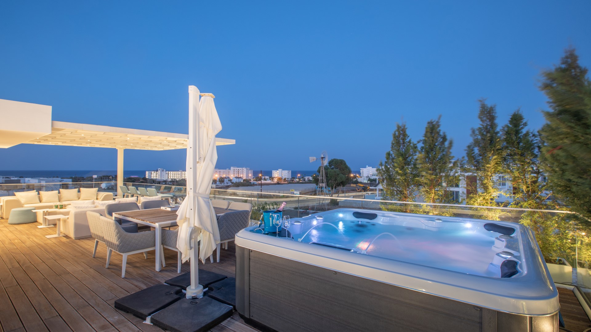 Private outdoor swimming pool, hot tub jacuzzi on the roof terrace.