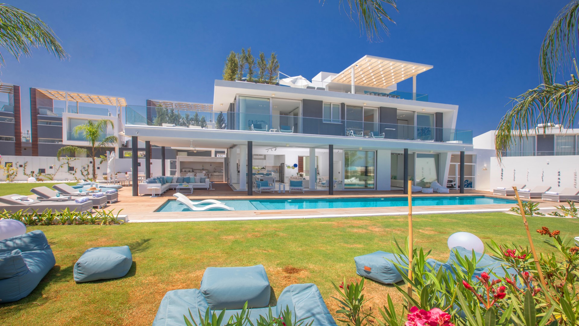 This sensational 4 bedroom luxury villa is perfectly located in the heart of Protaras, within easy walking distance of the area’s beautiful beaches and local amenities. Designed to the highest standards, the villa features state-of-the-art furnishings, contemporary décor and an impressive range of premium extras, making it the ultimate choice for guests seeking a truly unforgettable holiday experience in Cyprus.