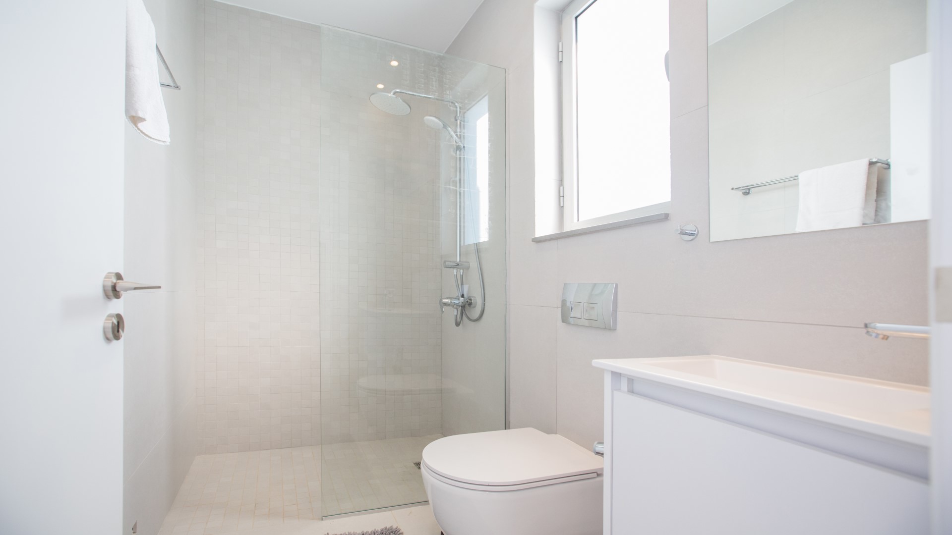 Upstairs, you will find all three bedrooms, all of which offer stunning views. The master double bedroom features a balcony with stunning sea views and an en suite bathroom with shower and WC. Bedroom two has a double bed, while bedroom three has two single beds. All bedrooms are fitted with wardrobes and bedside cabinets. The main family bathroom with shower and WC is also located on this floor.