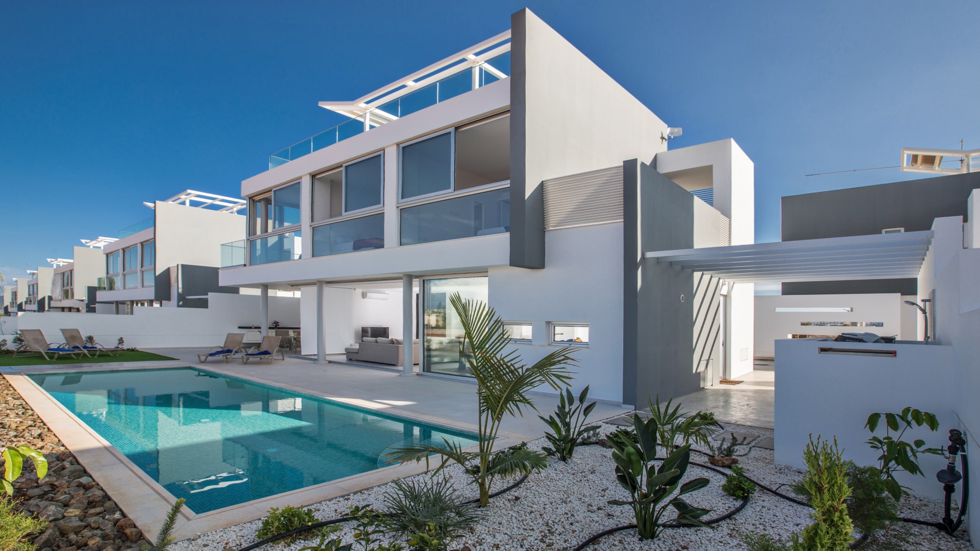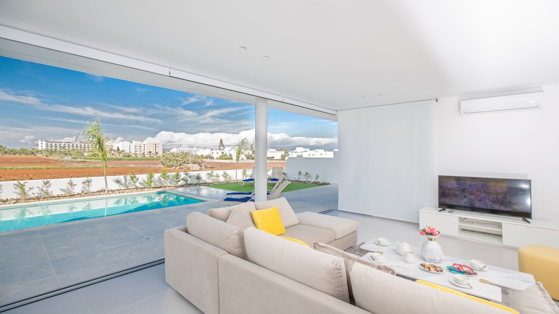 This stunning and luxurious villa is located in the popular resort area of Protaras and is just a 5 minute walk to the beach, as well as a vast selection of bars, restaurants and shops. Newly built and fully equipped with brand new furniture and fittings, the villa ensures a comfortable and perfect self-catering stay.