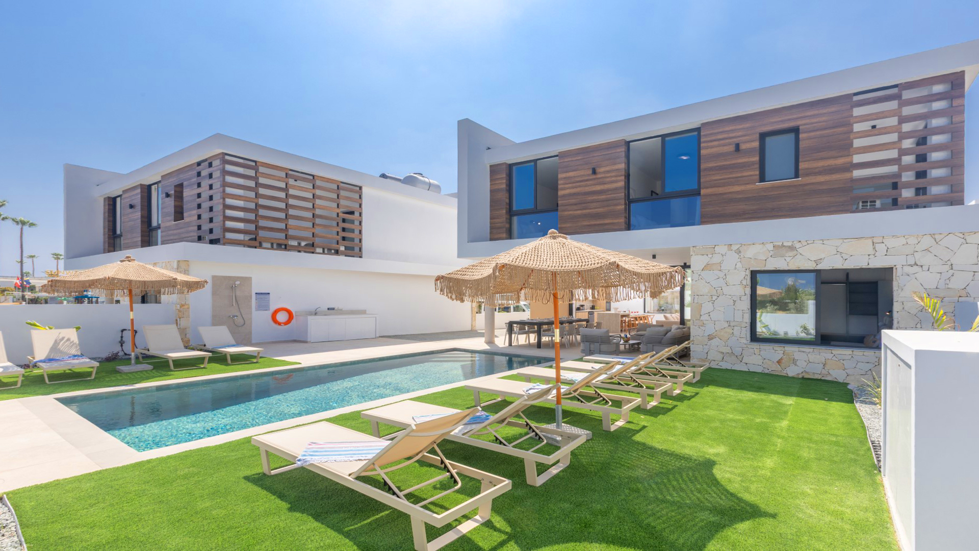 This exceptional, brand new 5 bedroom luxury villa is perfectly positioned in a prime central location in Ayia Napa, just a short walk from Nissi Avenue and its wide selection of beaches, restaurants and amenities. Newly built in August 2025, the villa has been thoughtfully designed and furnished with modern, high-quality fittings throughout, providing an elegant and comfortable base for a memorable stay.
