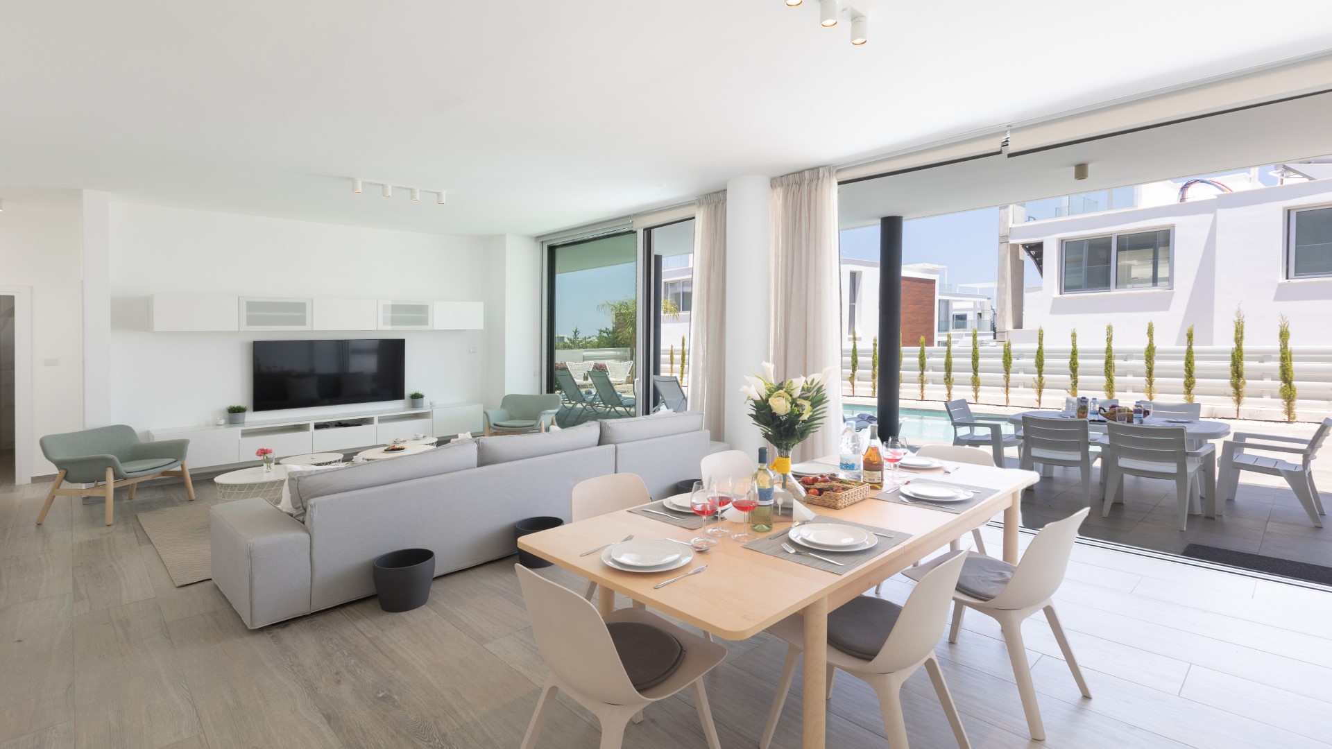 This exceptional 4 bedroom luxury villa enjoys a prime location in Protaras, within easy walking distance of the area’s beautiful beaches and local amenities. Designed with contemporary elegance throughout, the villa showcases high-end furnishings, modern finishes and a collection of premium features, making it an outstanding choice for guests seeking a truly memorable and indulgent holiday.