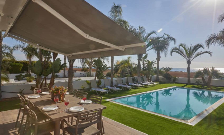Seafront 3 bedroom detached villas all with private pools located on the sea front of Ayia Thekla, Ayia Napa. We have 3 x 3 bedroom villas here so we can accommodate groups of up to 18 people across the 3 villas.