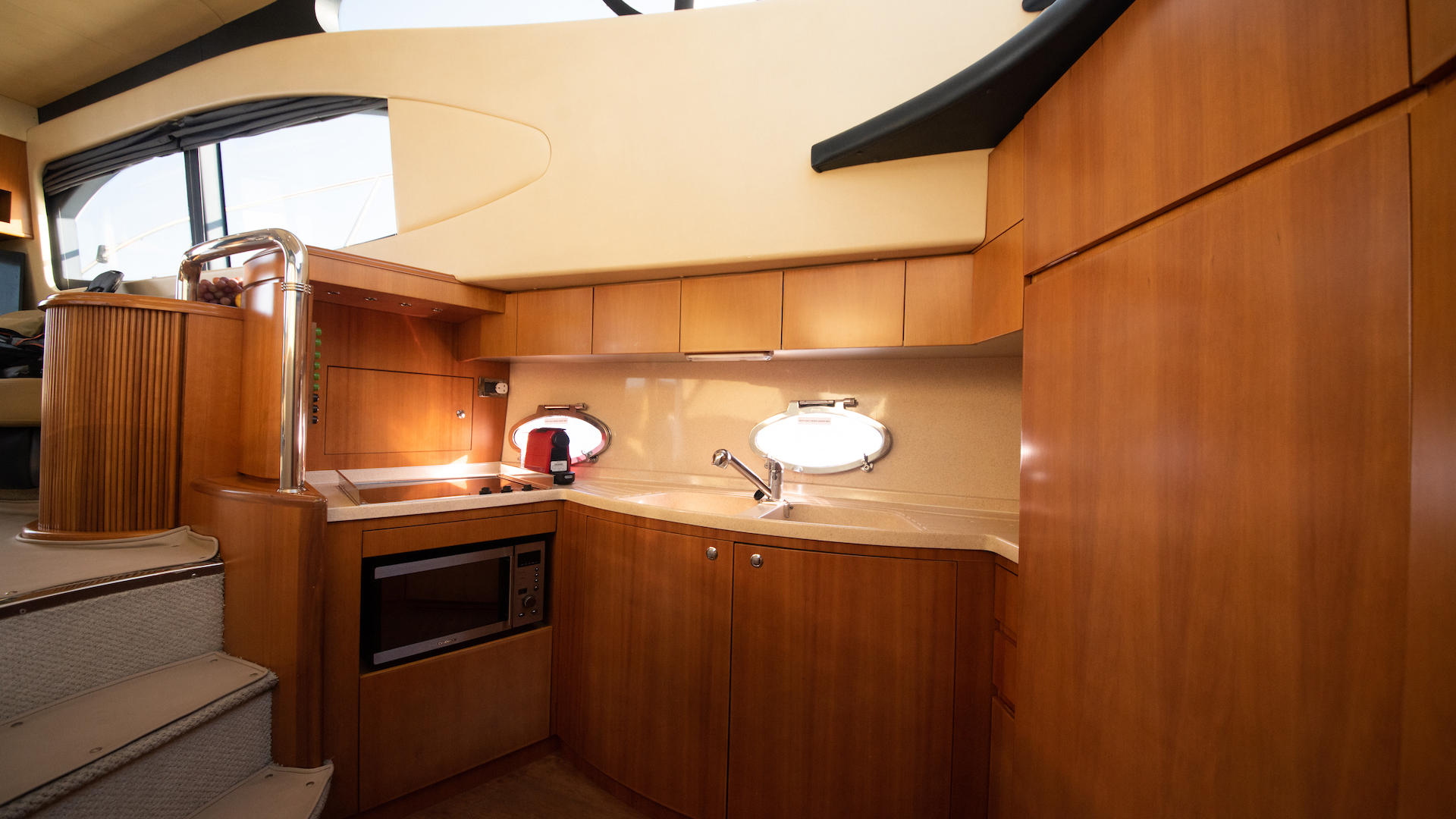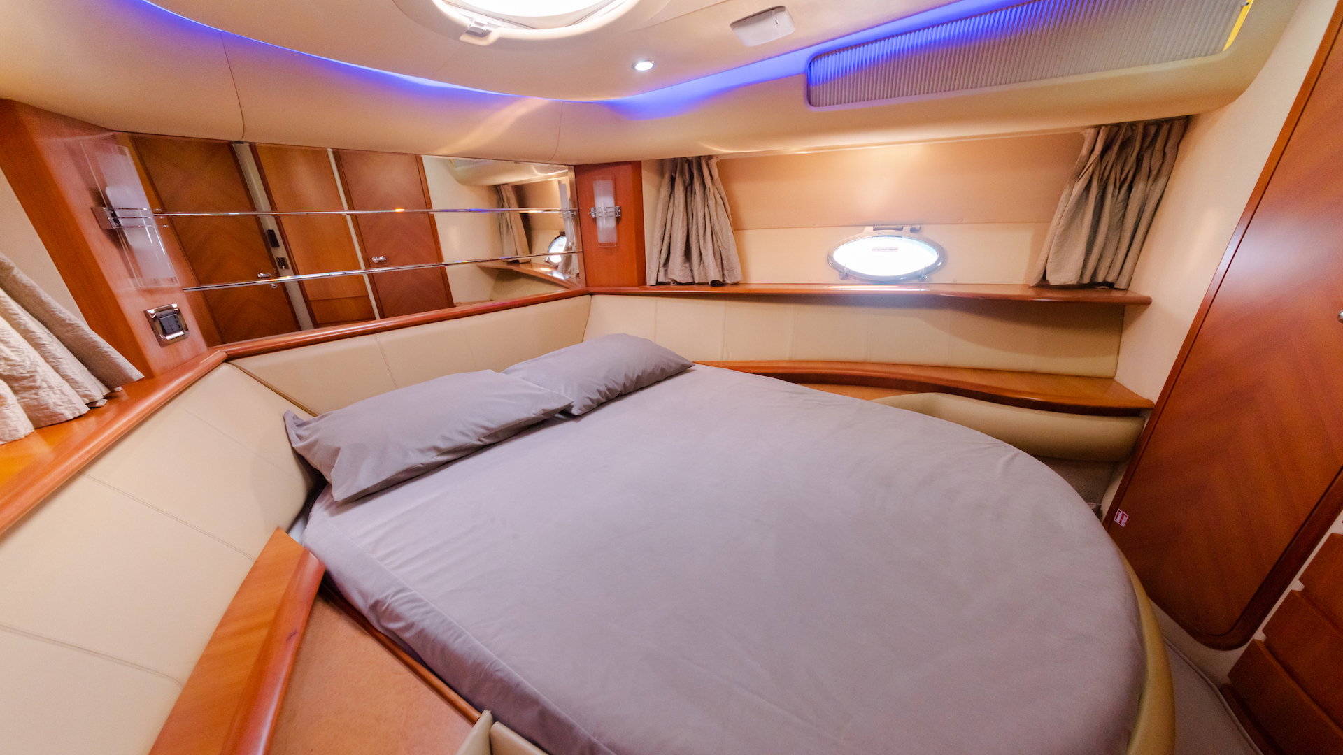 You will be fascinated by the aura of elegance and finesse. The AZ46 is created with emphasis on comfort, luxury and styling. It is a perfect balance between fashion and functionality. A cozy fly bridge yacht is equipped with modern control systems using latest technology. Main interior characteristics of Lounge Saloon and 2 Cabins are natural wood trim and leather furniture.