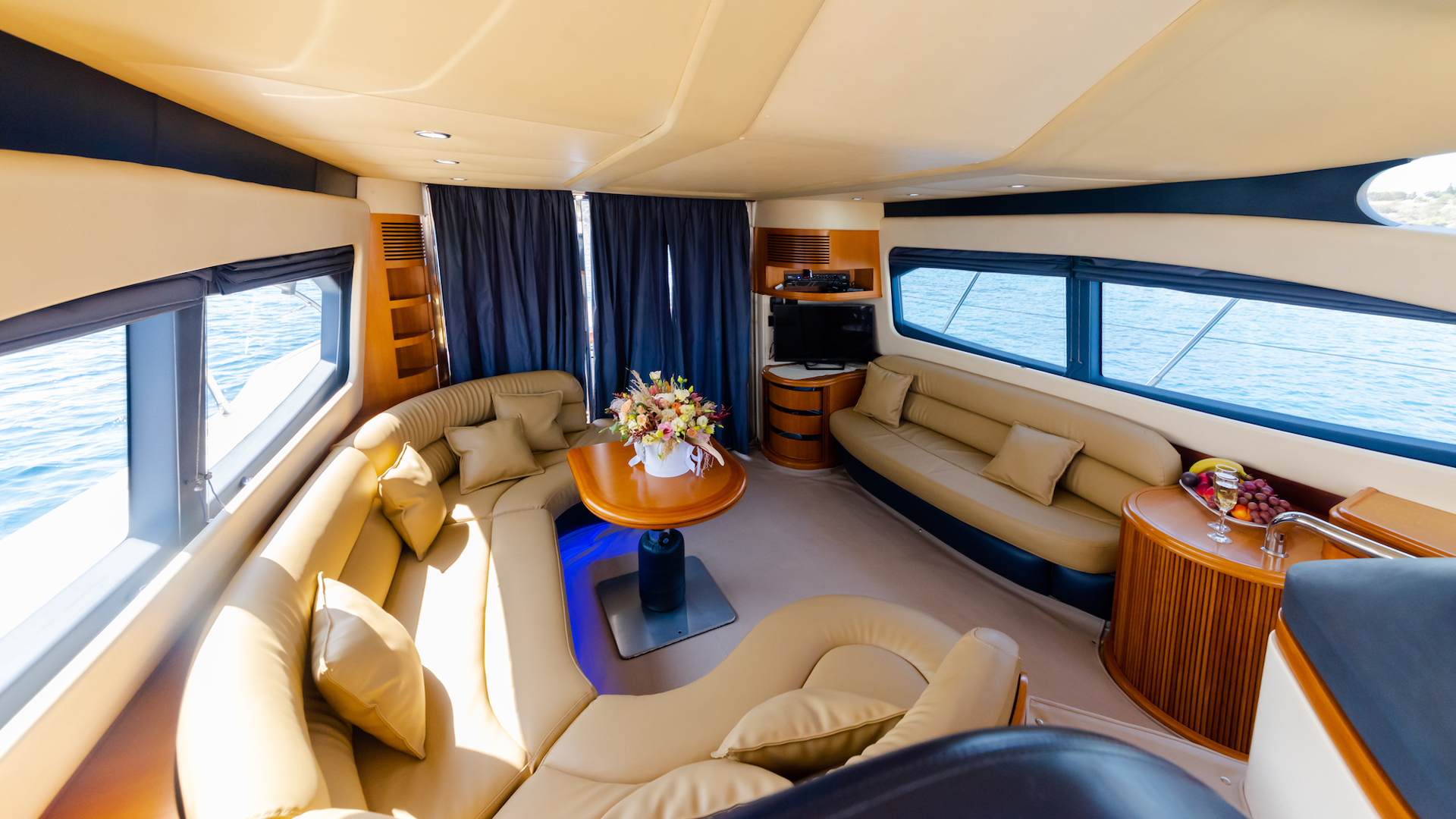 Prices include fuel for cruising in the Ayia Napa and Protaras area, captain and crew services, sparkling wine, beer, water and seasonal fruits.