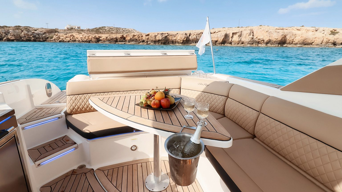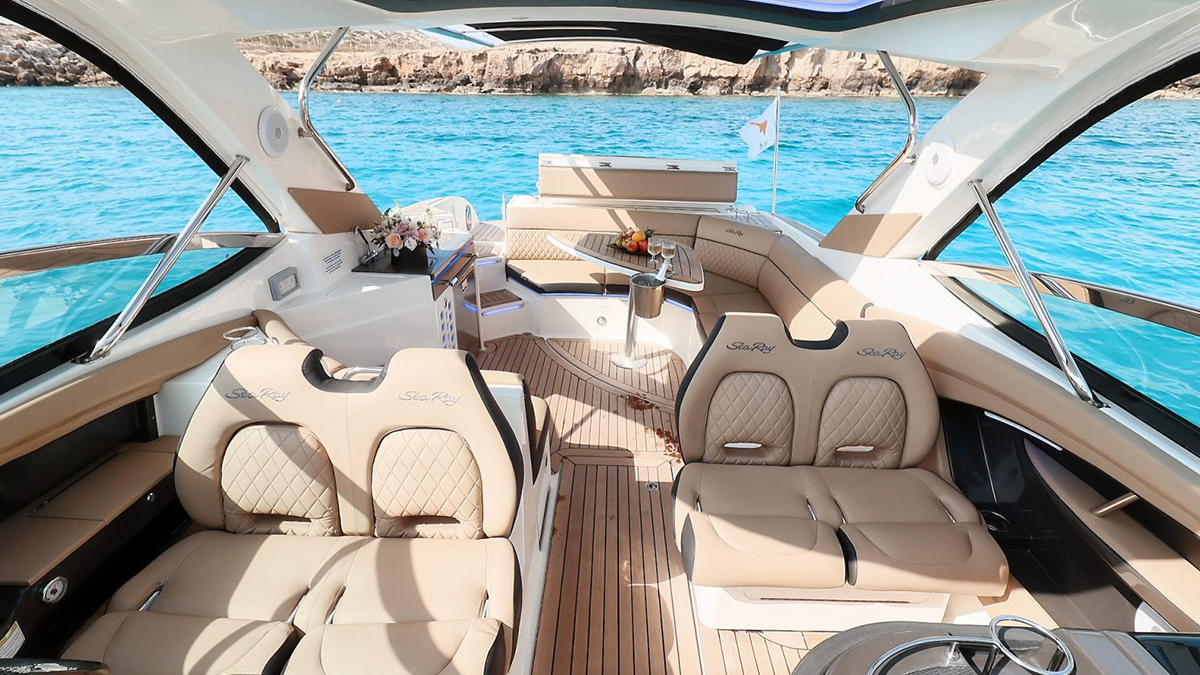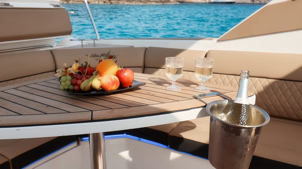 Prices include fuel for cruising in the Ayia Napa and Protaras area, captain and crew services, sparkling wine, beer, water and seasonal fruits.