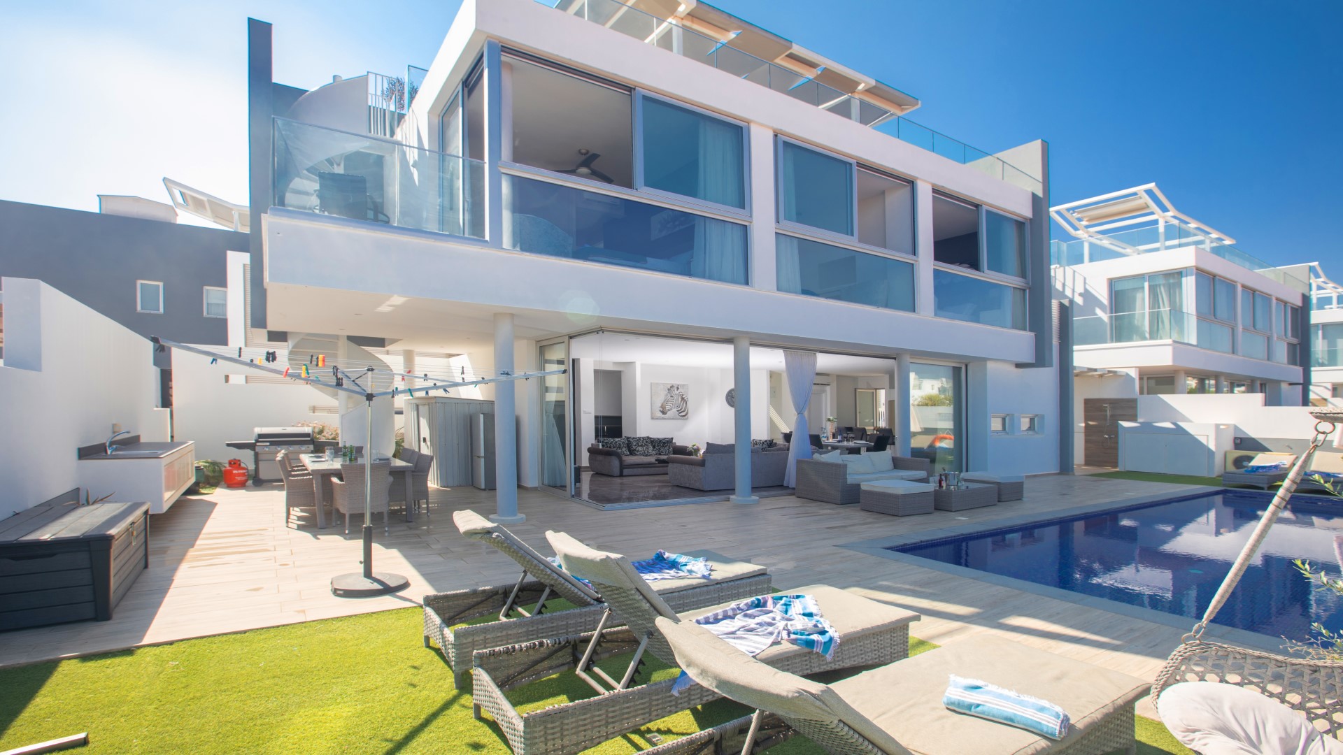 3 Bedrooms, 3 Bathrooms, Sleeps 6+2, private pool with optional pool heating, 600 metres to Sunrise Beach.