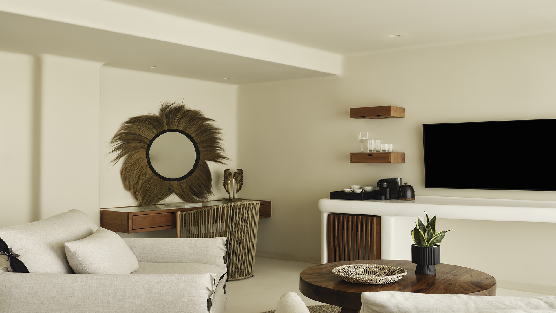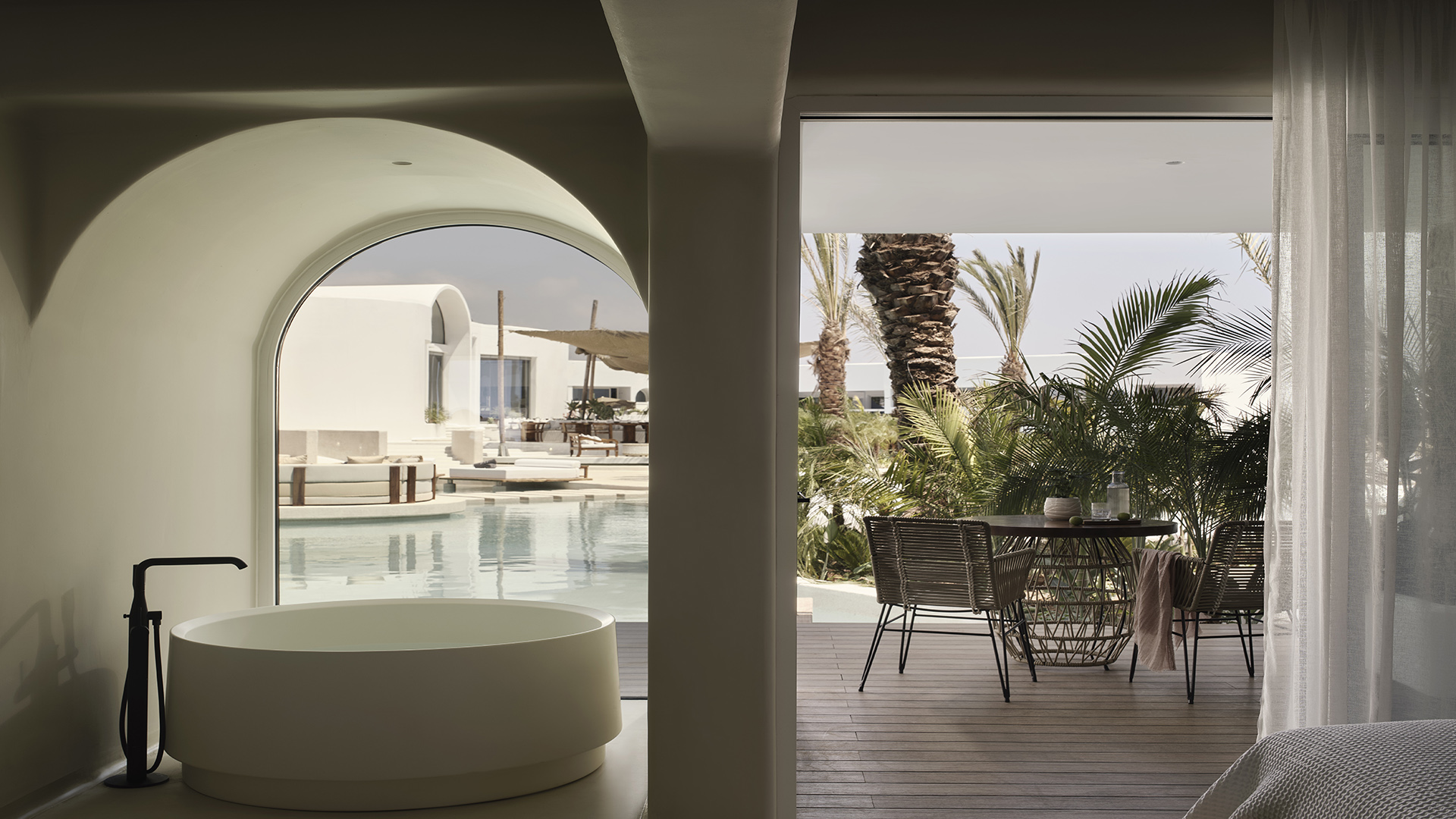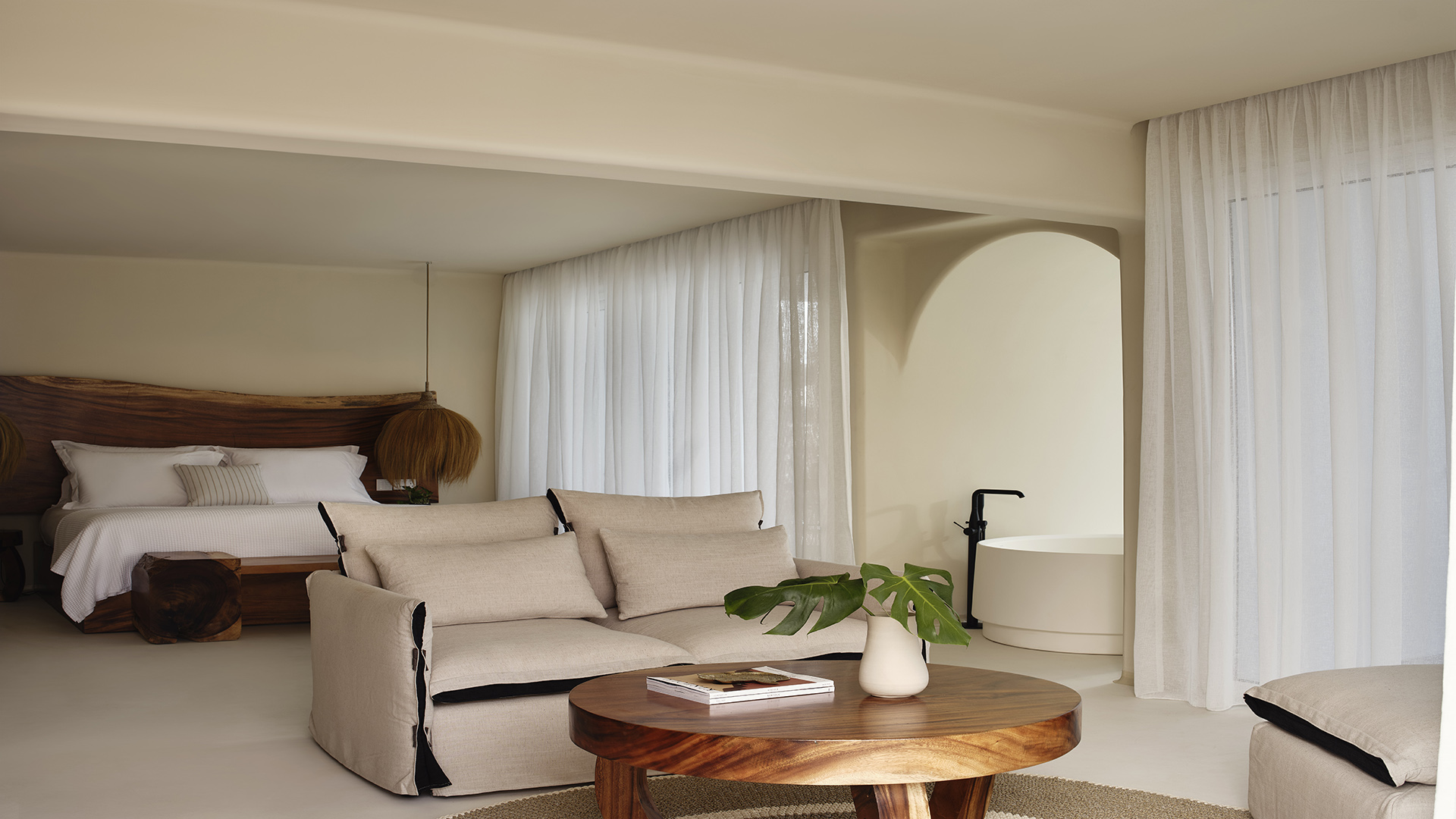 Inside, the suite features a king-size bed, a comfortable seating area and a modern open-plan design that enhances both space and natural light. Carefully selected furnishings and premium finishes create a sophisticated yet welcoming atmosphere.